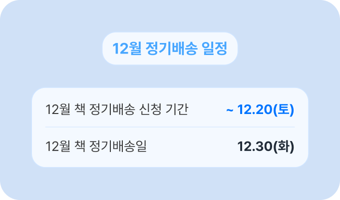 ์ ์ฐพ๊ณ ์๋ค๋ฉด, 12์ ์ ๊ธฐ๋ฐฐ์ก์ ์ ์ฒญํด ๋ณด์ธ์!