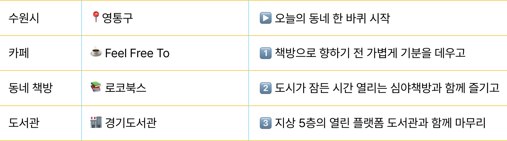 ๋ผ์ด์ง์ฒ๋ผ ์กฐ๊ธ ๋ ๊ฐ๋ฐฉ๊ฐ ์๋ ๊ณต๊ฐ์ผ๋ก ๋ง๋ค์ด ์ฌ๋๋ค์ด ์ํตํ๋ฉฐ ๋๊ธํ ์๊ฐ์ ๋ณด๋ผ ์ ์๋๋ก ๊พธ๋ช์ด์. ๊ฐ์ ์ํ๋ ์๋์ ๋ฐฉ์์ผ๋ก ๊ฒฝํํ๋ ์ฑ